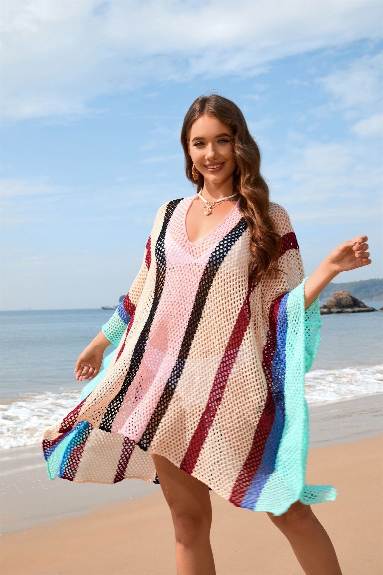 Avec sa coupe ample, son tissu léger et ses détails ajourés élégants, il apporte à la fois confort, style et féminité.