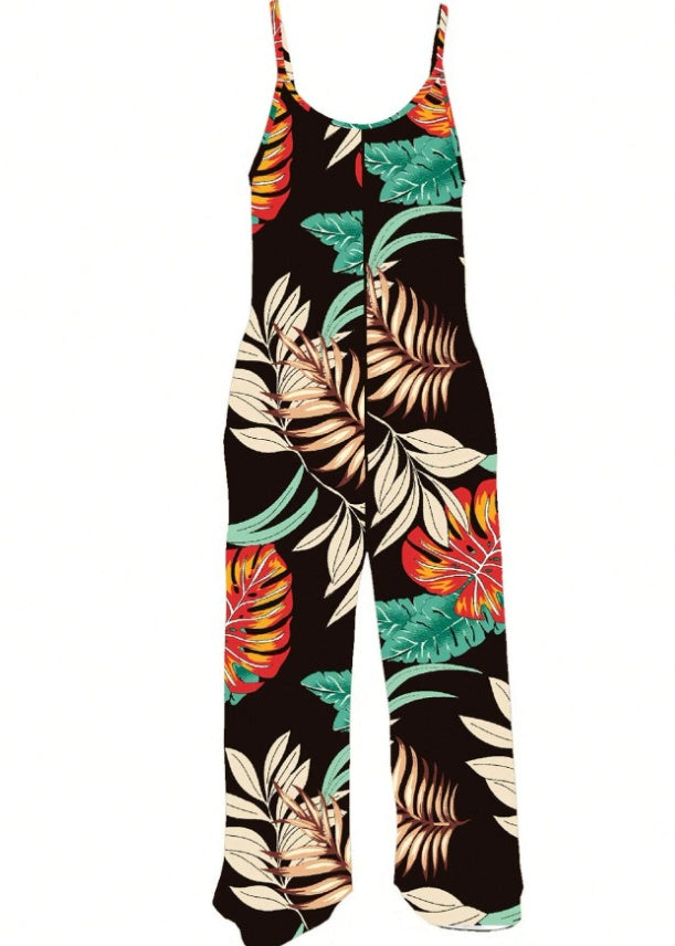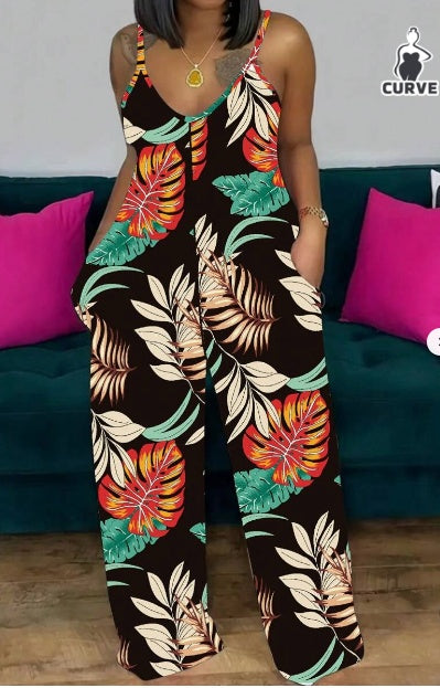 Combinaison droite grande taille 🩳 à imprimé botanique, avec poches – coupe débardeur, fluide et tendance – tailles XL à 5XL 🌿