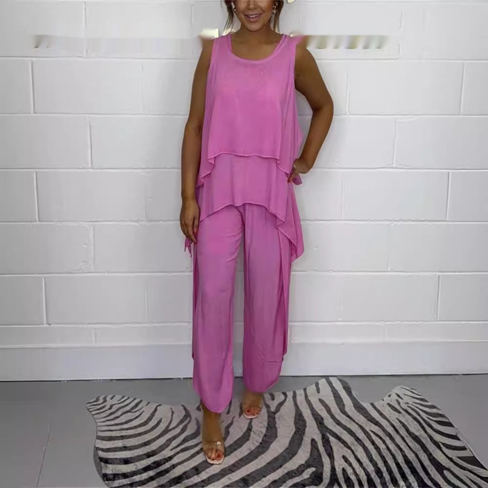 Costume deux pièces grande taille 👖 sans manches, coupe ample et tendance – parfait pour l’été, le bureau ou les sorties – du XL au 5XL ☀️