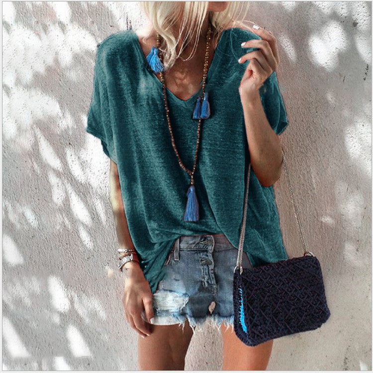 👗 Adoptez le confort tout en restant stylée avec cette robe ample grande taille à col V et manches courtes !